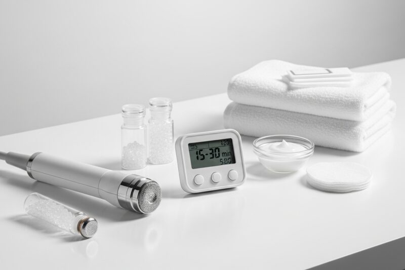 Standardowy zabieg obejmuje oczyszczanie skóry, sam dermaplaning (usunięcie meszku i martwego naskórka) oraz pielęgnację końcową, czyli aplikację serum i kremu z filtrem SPF.